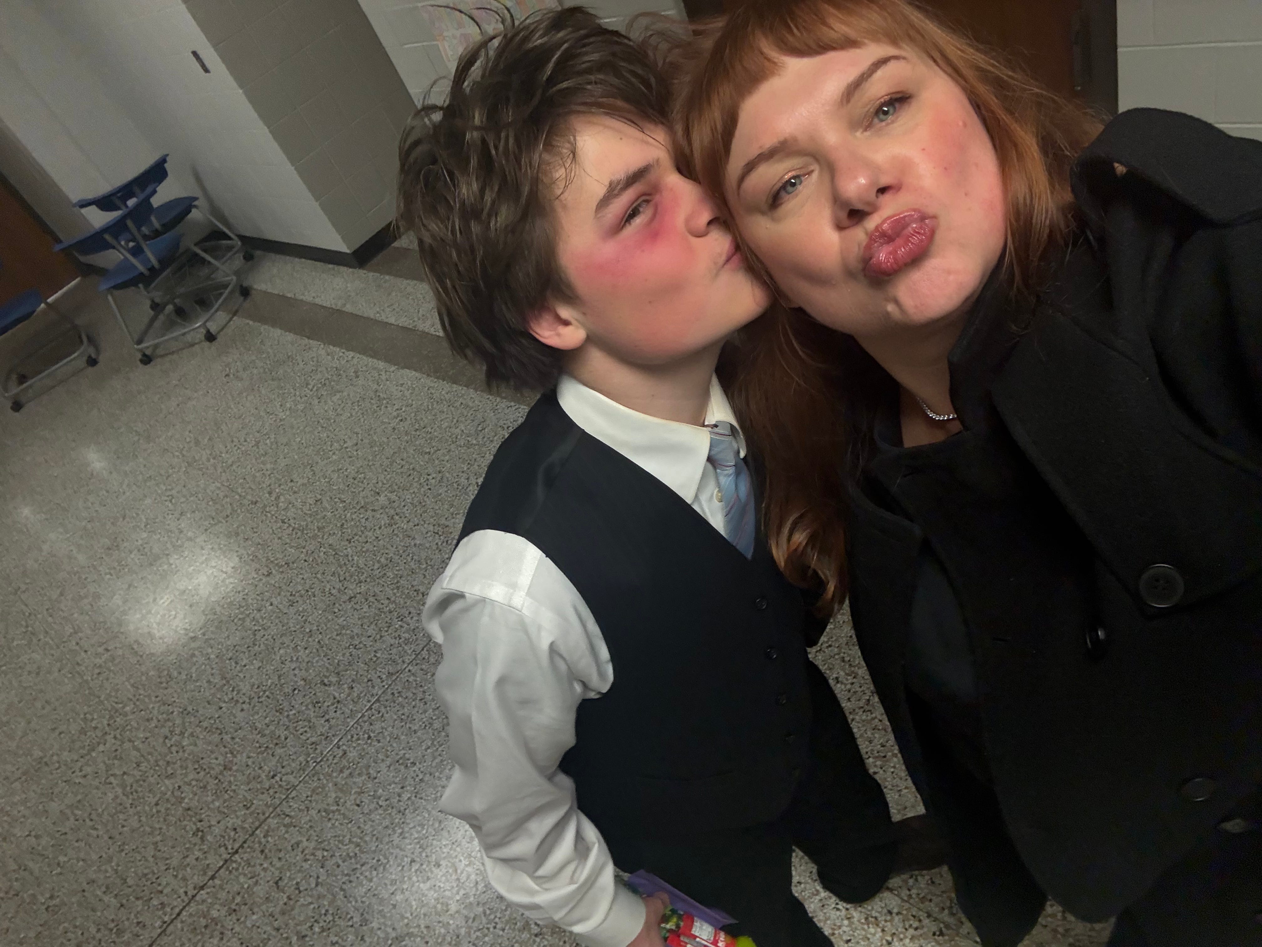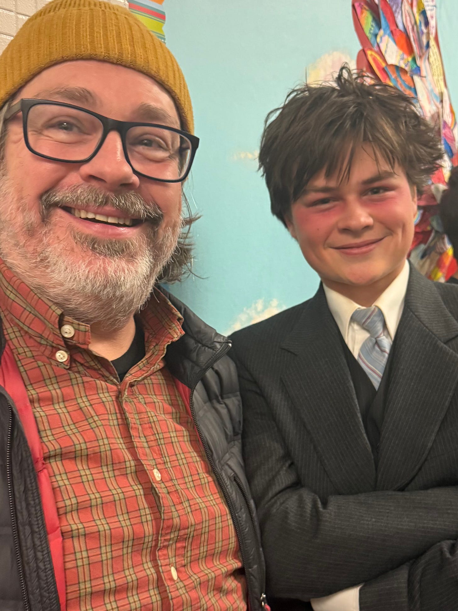 Last night Scout finished his 3-night run as Simon Stimson in Our Town and Keith played a little gig with his noisy band at the studio. I also went to a CHEESEMAS party. Yum. It was a wild night. It just gets wilder this week with boys home from college and the OSU typewriter holiday party gig, a reading at Two Dollar Radio, the NUTCRACKER and a Franklinton Friday Poetry Pop Up at Secret Studio.