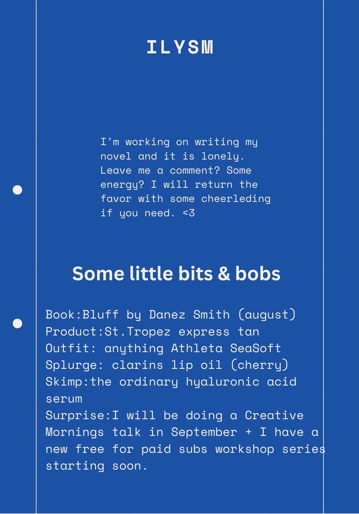 SUM vibes& prompts Amy Turn SharpJul 01, 202478ShareI would love to send you things xoSubscribeWarm Hands is a reader-supported publication. To receive new posts and support my work, consider becoming a free or paid subscriber.SubscribePreviousNext